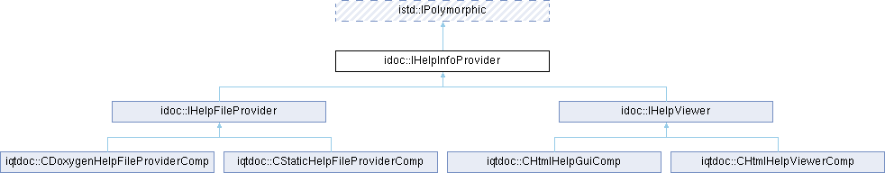 Implemented in iqtdoc::CDoxygenHelpFileProviderComp, iqtdoc::CHtmlHelpGuiComp, iqtdoc::CHtmlHelpViewerComp, and iqtdoc::CStaticHelpFileProviderComp.