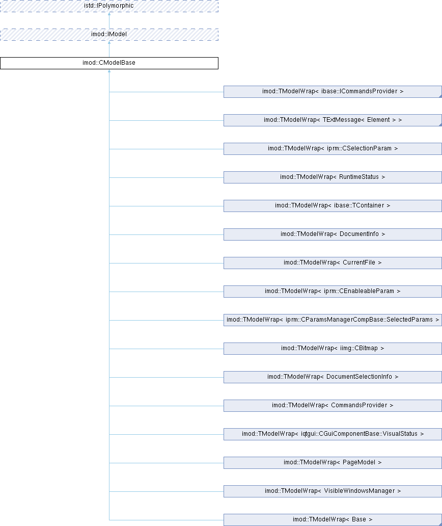 Implemented in imod::TModelWrap< Base >, imod::TModelWrap< CommandsProvider >, imod::TModelWrap< CurrentFile >, imod::TModelWrap< DocumentInfo >, imod::TModelWrap< DocumentSelectionInfo >, imod::TModelWrap< ibase::ICommandsProvider >, imod::TModelWrap< ibase::TContainer >, imod::TModelWrap< iimg::CBitmap >, imod::TModelWrap< iprm::CEnableableParam >, imod::TModelWrap< iprm::CParamsManagerCompBase::SelectedParams >, imod::TModelWrap< iprm::CSelectionParam >, imod::TModelWrap< iqtgui::CGuiComponentBase::VisualStatus >, imod::TModelWrap< PageModel >, imod::TModelWrap< RuntimeStatus >, imod::TModelWrap< TExtMessage< Element > >, and imod::TModelWrap< VisibleWindowsManager >.