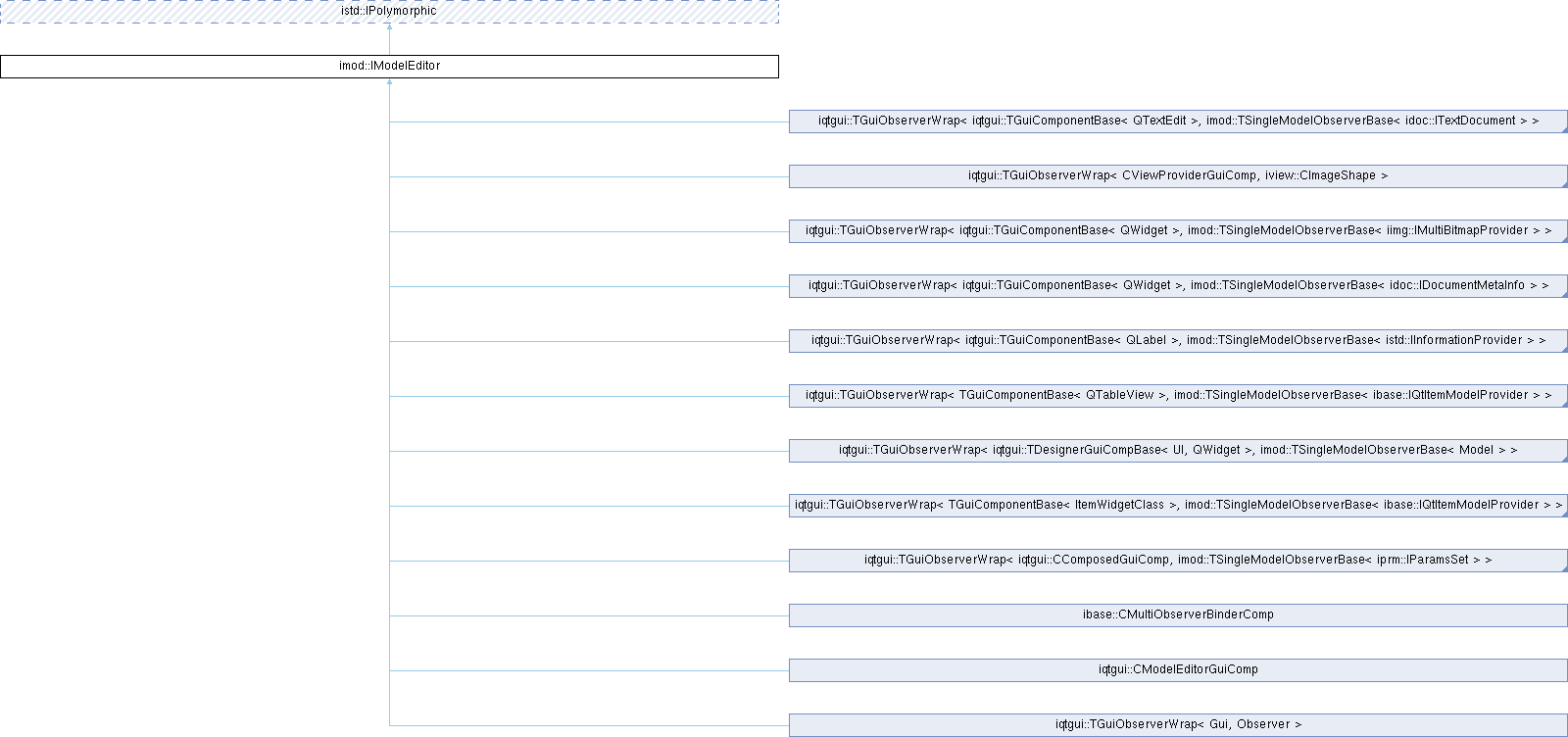 Implemented in ibase::CMultiObserverBinderComp, iqtgui::CModelEditorGuiComp, iqtgui::TGuiObserverWrap< Gui, Observer >, iqtgui::TGuiObserverWrap< CViewProviderGuiComp, iview::CImageShape >, iqtgui::TGuiObserverWrap< iqtgui::CComposedGuiComp, imod::TSingleModelObserverBase< iprm::IParamsSet > >, iqtgui::TGuiObserverWrap< iqtgui::TDesignerGuiCompBase< UI, QWidget >, imod::TSingleModelObserverBase< Model > >, iqtgui::TGuiObserverWrap< iqtgui::TGuiComponentBase< QLabel >, imod::TSingleModelObserverBase< istd::IInformationProvider > >, iqtgui::TGuiObserverWrap< iqtgui::TGuiComponentBase< QTextEdit >, imod::TSingleModelObserverBase< idoc::ITextDocument > >, iqtgui::TGuiObserverWrap< iqtgui::TGuiComponentBase< QWidget >, imod::TSingleModelObserverBase< idoc::IDocumentMetaInfo > >, iqtgui::TGuiObserverWrap< iqtgui::TGuiComponentBase< QWidget >, imod::TSingleModelObserverBase< iimg::IMultiBitmapProvider > >, iqtgui::TGuiObserverWrap< TGuiComponentBase< ItemWidgetClass >, imod::TSingleModelObserverBase< ibase::IQtItemModelProvider > >, iqtgui::TGuiObserverWrap< TGuiComponentBase< QTableView >, imod::TSingleModelObserverBase< ibase::IQtItemModelProvider > >, and iqtprm::CExtComposedParamsSetGuiComp.