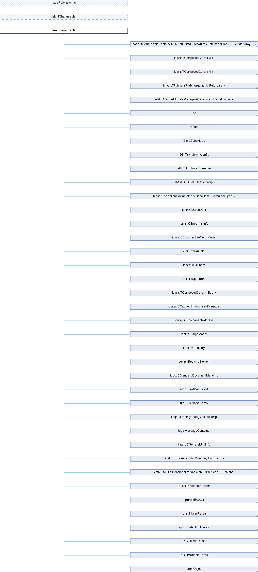 Implemented in CAbComp, i2d::CAffineTransformation2d, i2d::CAnnulus, i2d::CAnnulusSegment, i2d::CArc, i2d::CCircle, i2d::CDataNodePolylineBase, i2d::CGraphData2d, i2d::CLabel, i2d::CLine2d, i2d::CObject2dProxyComp, i2d::COrientedCircle, i2d::CParallelogram, i2d::CPolyline, i2d::CPolypoint, i2d::CPosition2d, i2d::CQuadrangle, i2d::CRectangle, i2d::CTubeNode, iattr::CAttributesManager, iattr::TAttribute< Value >, iattr::TMultiAttribute< Value >, ibase::CObjectQueueComp, ibase::TFactorisableContainer< InterfaceClass >, ibase::TSerializableContainer< ItemClass, ContainerType >, ibase::TSerializableContainer< QPair< istd::TSmartPtr< InterfaceClass >, QByteArray > >, icmm::CCieLabColor, icmm::CCmy, icmm::CCmyk, icmm::CHsv, icmm::CIlluminant, icmm::CLab, icmm::CRgb, icmm::CRgbColor, icmm::CSpectralColor, icmm::CSpectralColorSpecificationBase, icmm::CSpectrum, icmm::CSpectrumInfo, icmm::CSubstractiveColorModel, icmm::CTristimulusSpecification, icmm::CVarColor, icmm::TComposedColor< Size >, icmm::TComposedColor< 3 >, icmm::TComposedColor< 4 >, icomp::CCachedEnvironmentManager, icomp::CComponentAddress, icomp::CRegistry, icomp::CRegistryElement, icomp::CXpcModel, idoc::CStandardDocumentMetaInfo, idoc::CTextDocumentComp, idoc::TMultiPageDocumentWrap< Base >, idoc::TMultiPageDocumentWrap< idoc::IMultiPageDocument >, ifile::CFileNameParam, ifile::CRelativeFileNameParamComp, ifile::CSystemLocationComp, iimg::CBitmapBase, iimg::CScanlineMask, ilog::CExtMessage, ilog::CMessage, ilog::CTracingConfigurationComp, ilog::TExtMessage< Element >, imath::CGeneralUnitInfo, imath::TFulcrumGrid< Position, Fulcrums >, imath::TFulcrumGrid< Argument, Fulcrums >, imath::TMultidimensionalPolynomial< Dimensions, Element >, iprm::CDelegatedEnableableParamComp, iprm::CEnableableParam, iprm::CIdParam, iprm::CMultiParamsManagerComp, iprm::CNameParam, iprm::COptionsManager, iprm::CParamsManagerComp, iprm::CParamsManagerCompBase::UuidParam, iprm::CParamsManagerCompBase::ParamSet, iprm::CParamsManagerCompBase::SelectedParams, iprm::CParamsSet, iprm::CParamsSetDelegatorComp, iprm::CSelectableParamsSetComp, iprm::CSelectionParam, iprm::CTextParam, iprm::CTextParamComp, iprm::CVariableParamComp, iqtgui::CHierarchicalCommand, and Model.