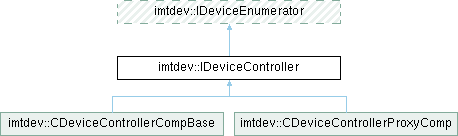 IDeviceController is the central control hub for device management in the imtdev library. It provides comprehensive device lifecycle management including enumeration, opening/closing, state tracking, and access to device information.